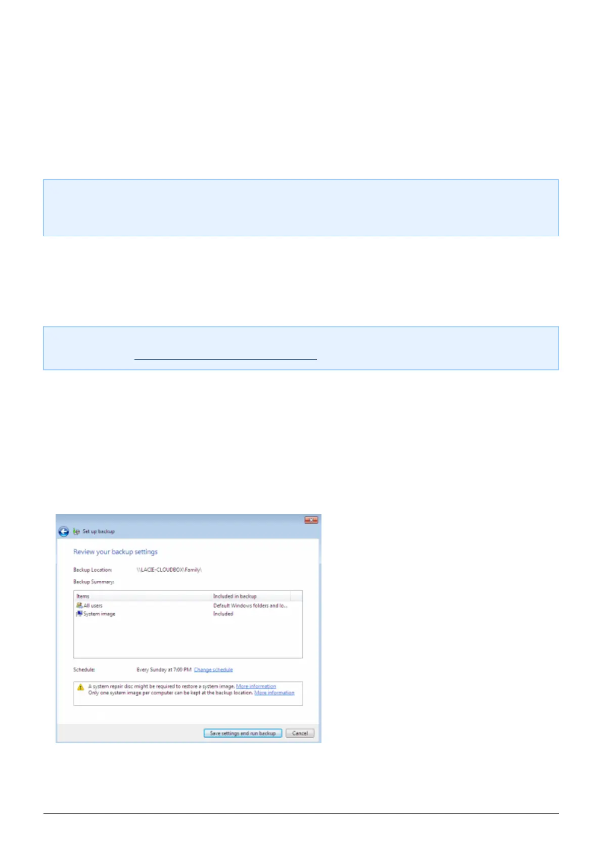 LaCie CloudBox. Subsequent backups will be much shorter since Windows Backup and LaCie Genie Timeline