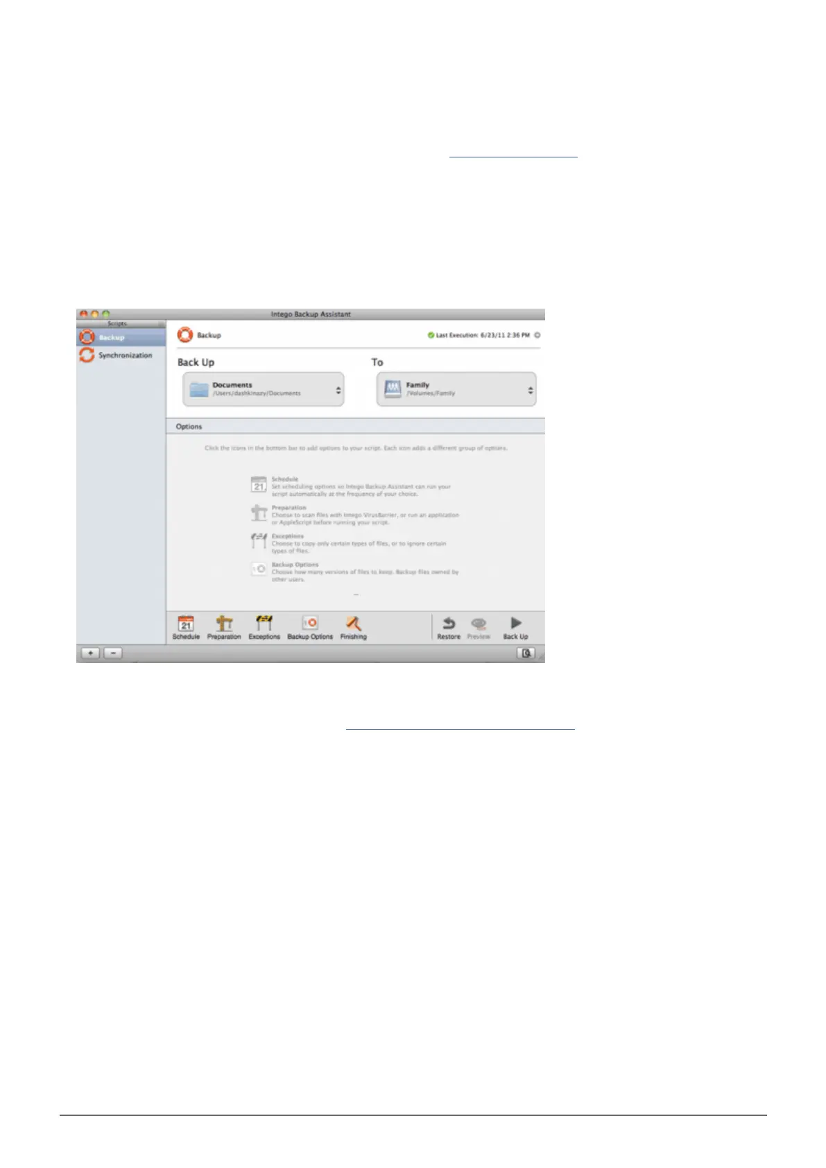For further information on how to use Intego: Intego Personal Backup User Manual.