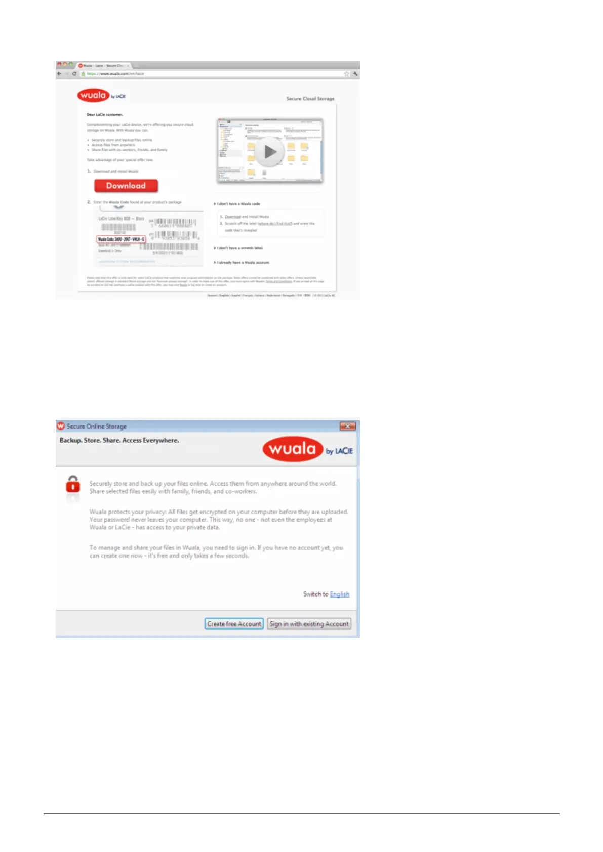 serial number for your LaCie CloudBox in the field Wuala Codes before clicking on Create Account. The