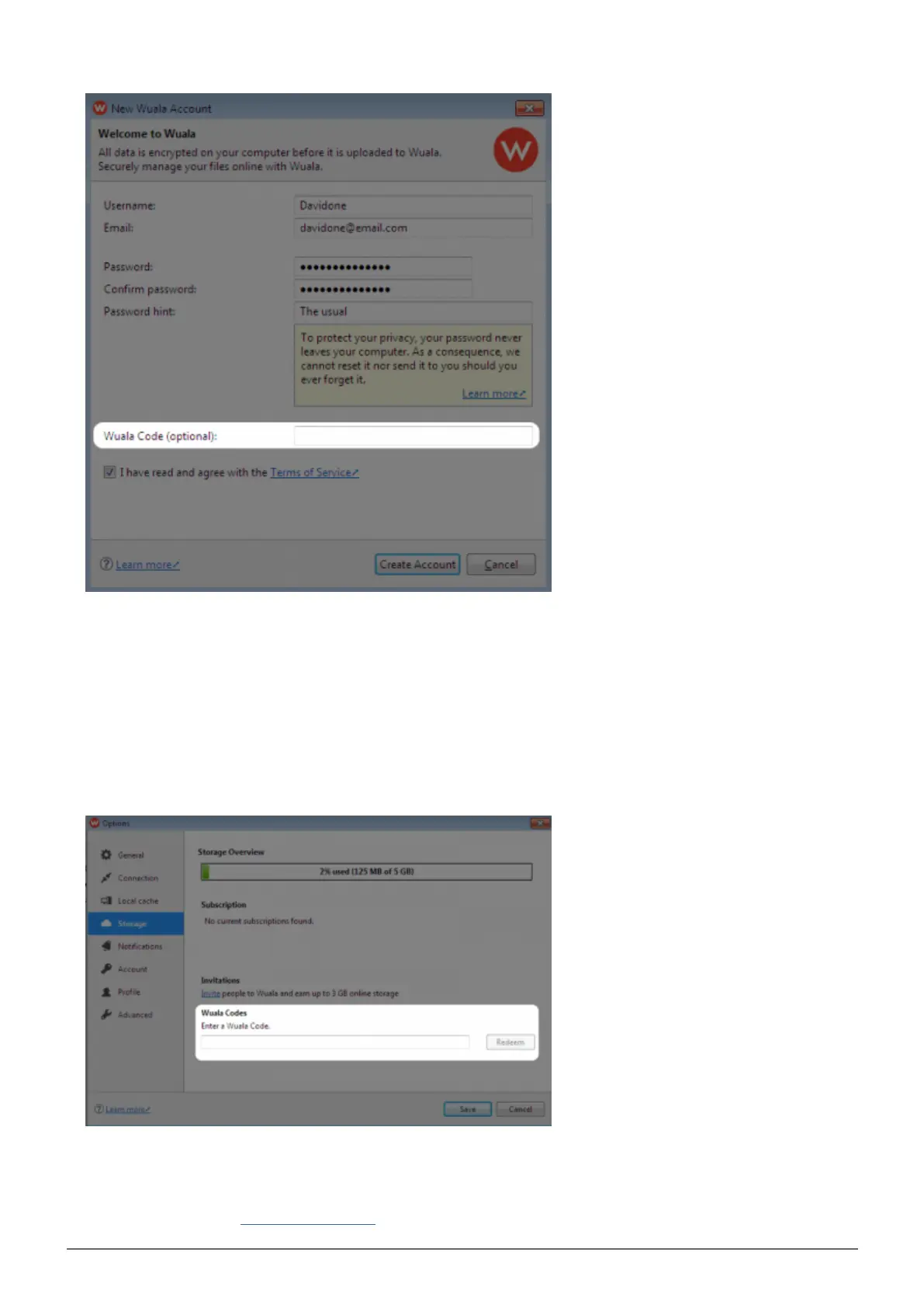 Windows: Select Tools > Options > Storage; Mac: Select Wuala > Preferences > Storage.2.
