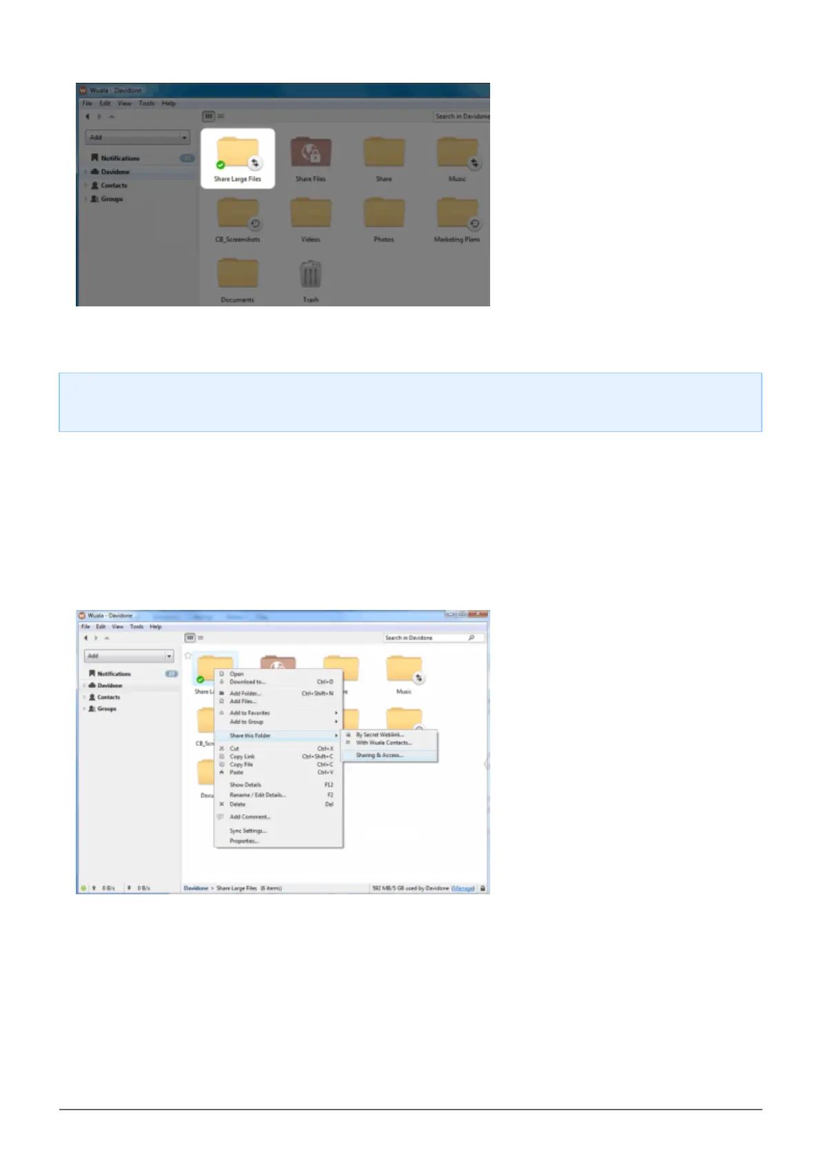 From your Wuala account, right click on the folder you synchronized in Step 2 to select Share this Folder >1.