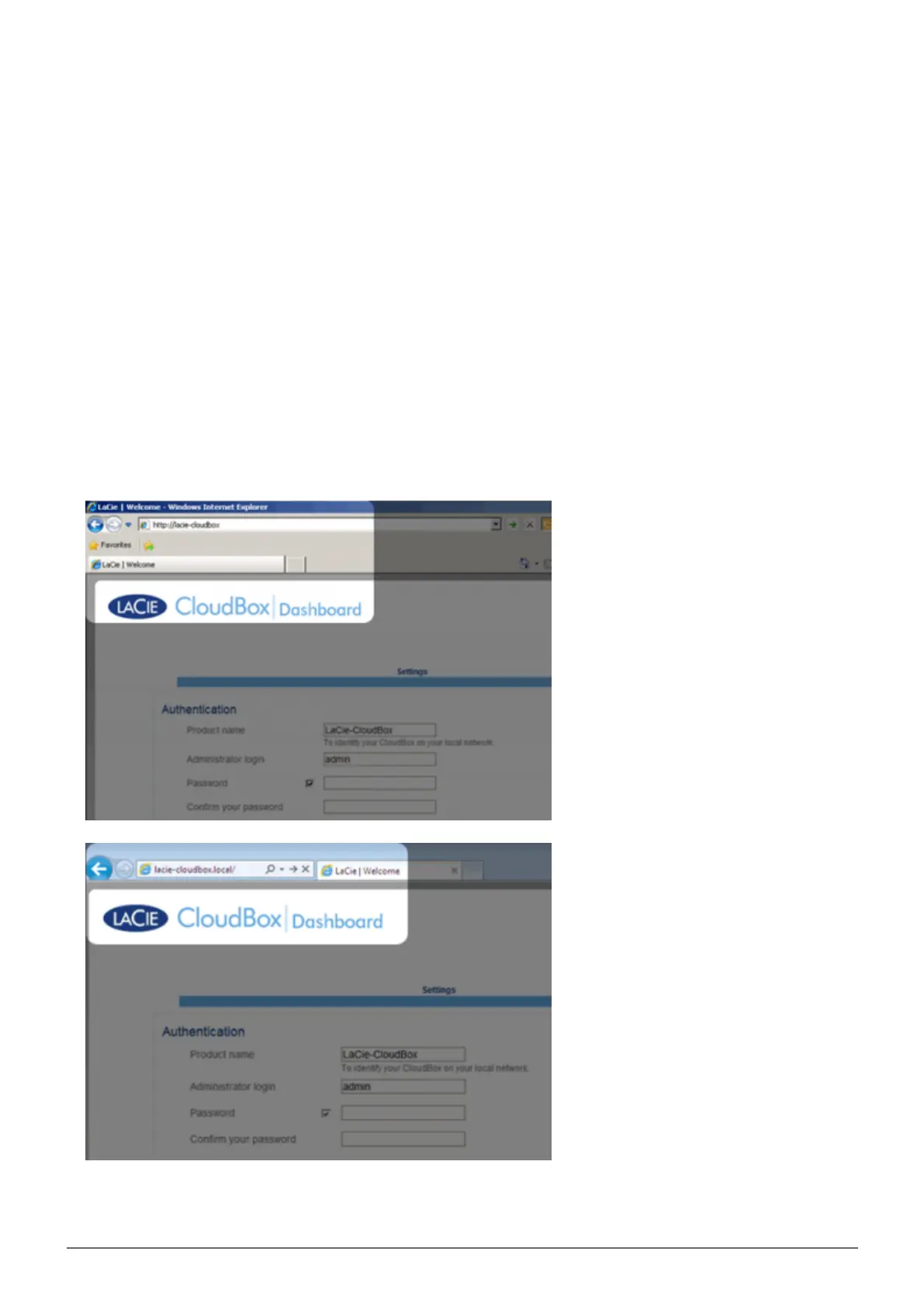 LaCie-CloudBox, the first time you log in. Please note that the name can be different based upon your