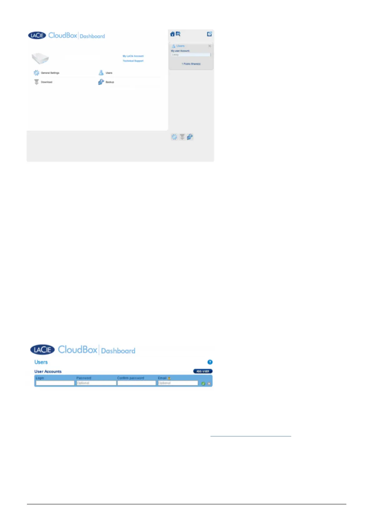 By creating a new user, the administrator will add a personal folder to the LaCie CloudBox. As opposed to the