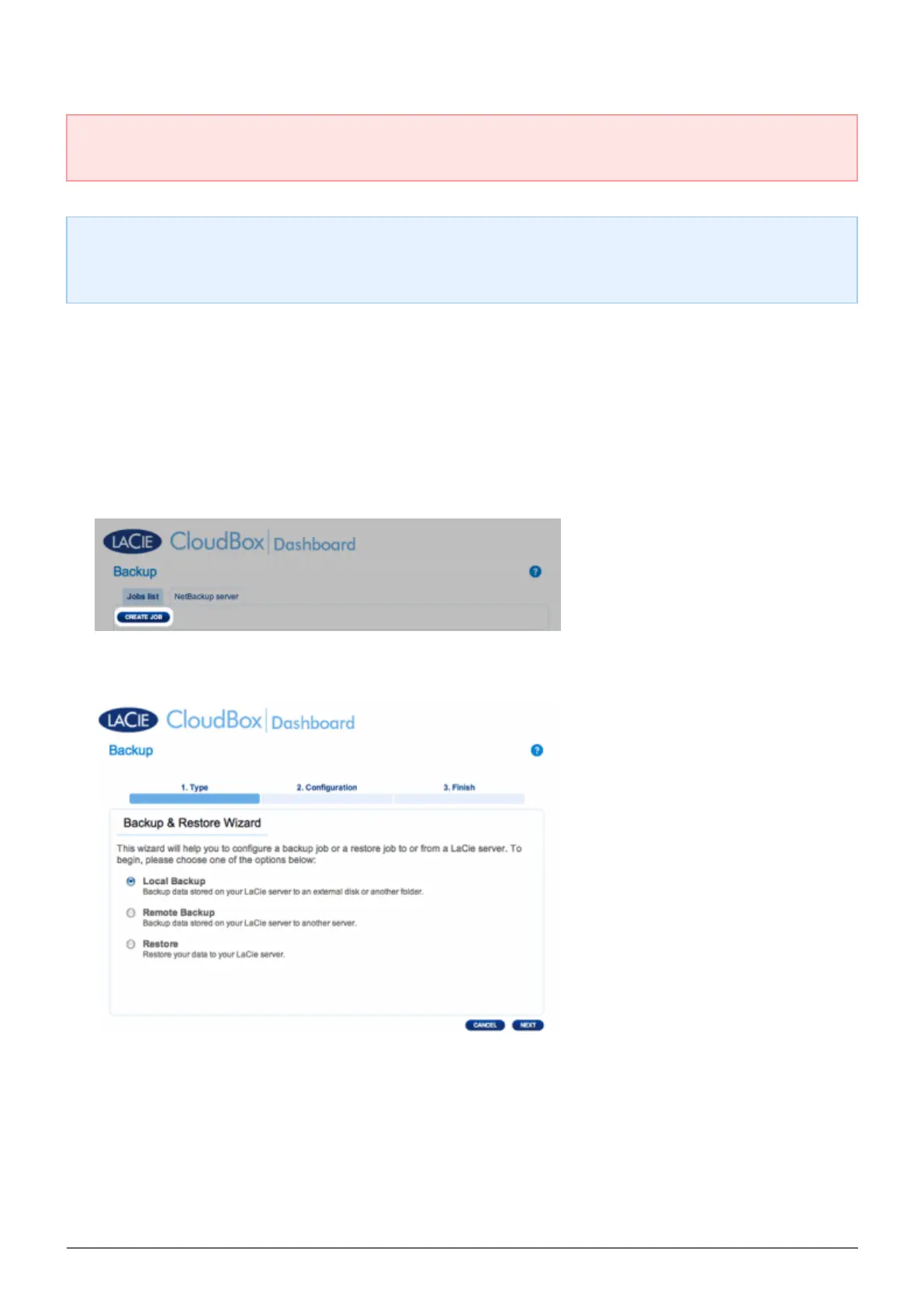 folders. The public access folder and private access folders on your LaCie CloudBox may also be called