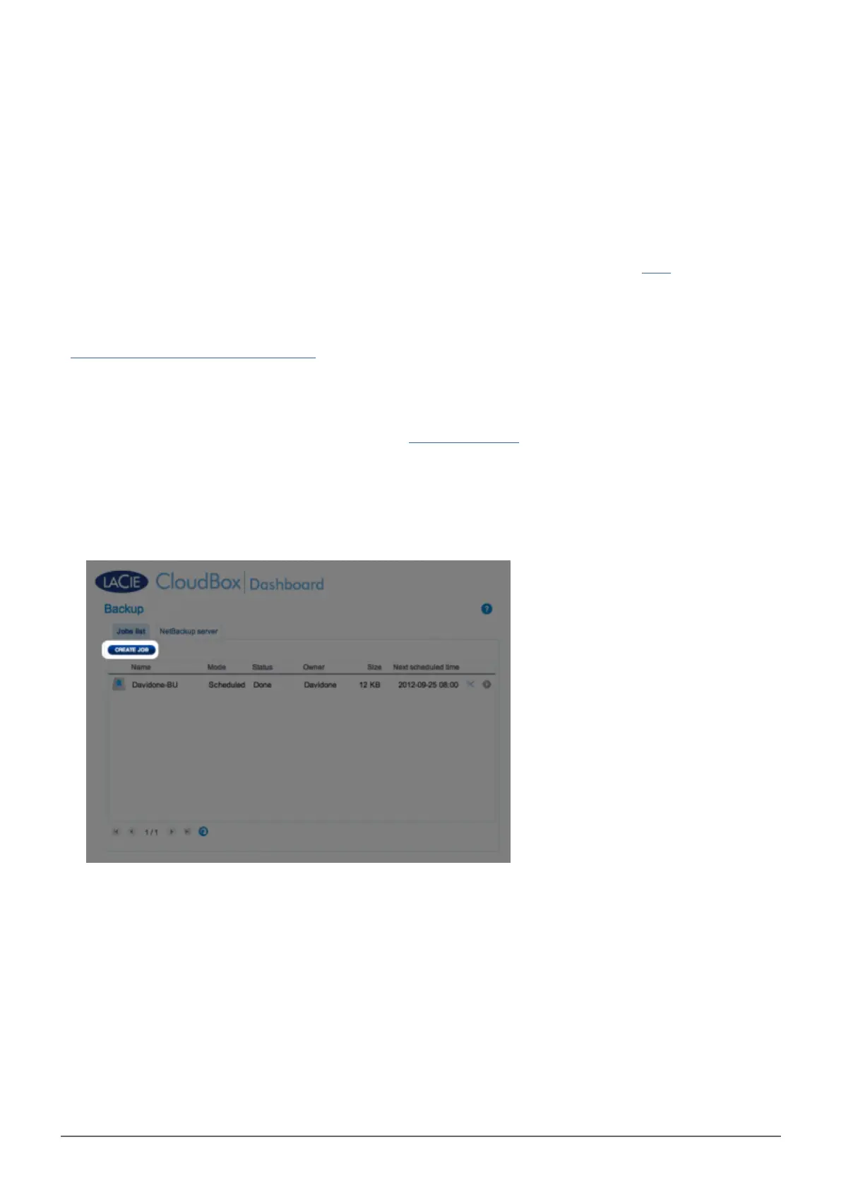 Go to your LaCie CloudBox Dashboard to select the Backup page.1.
