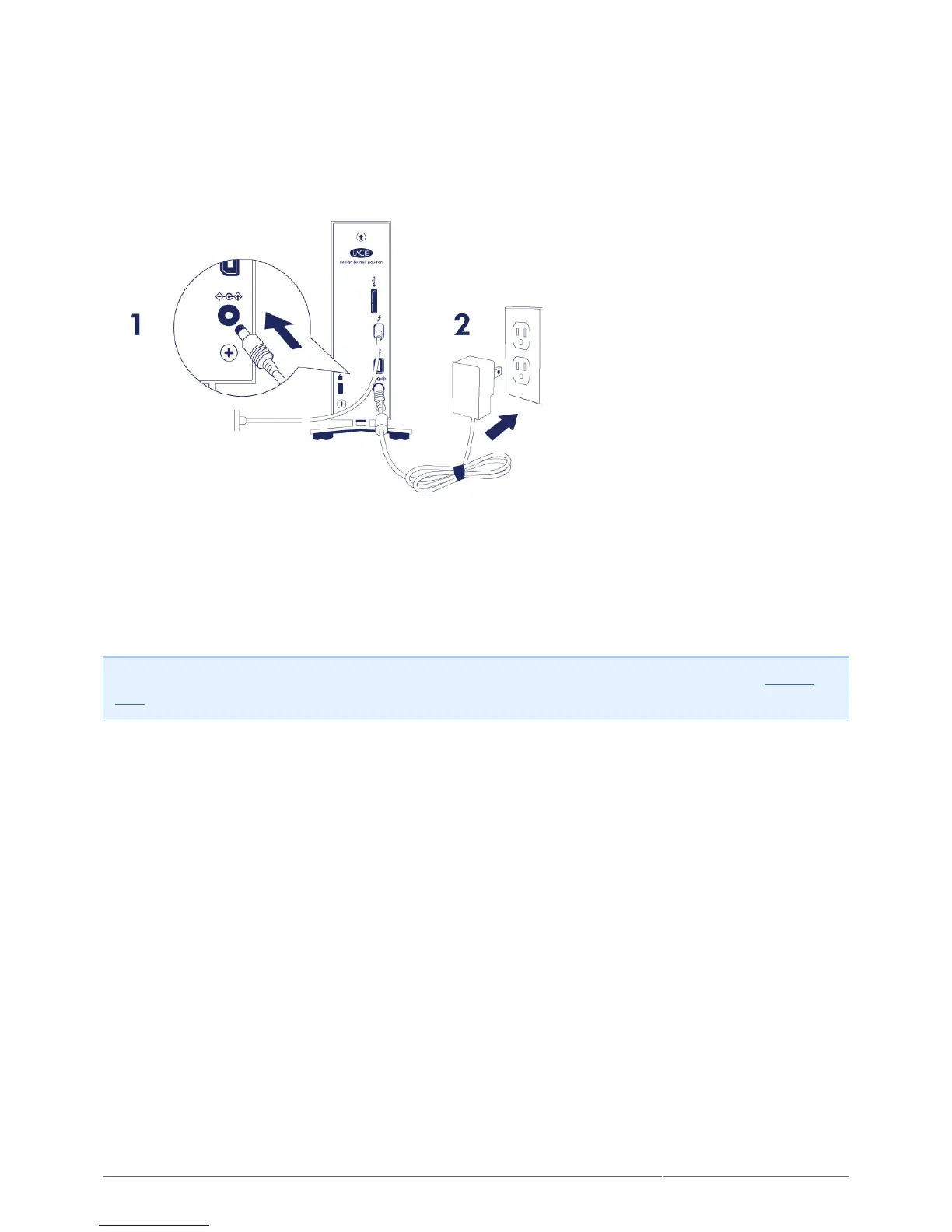 The LaCie d2 will power on automatically when it is connected to a computer that is turned on and a live power