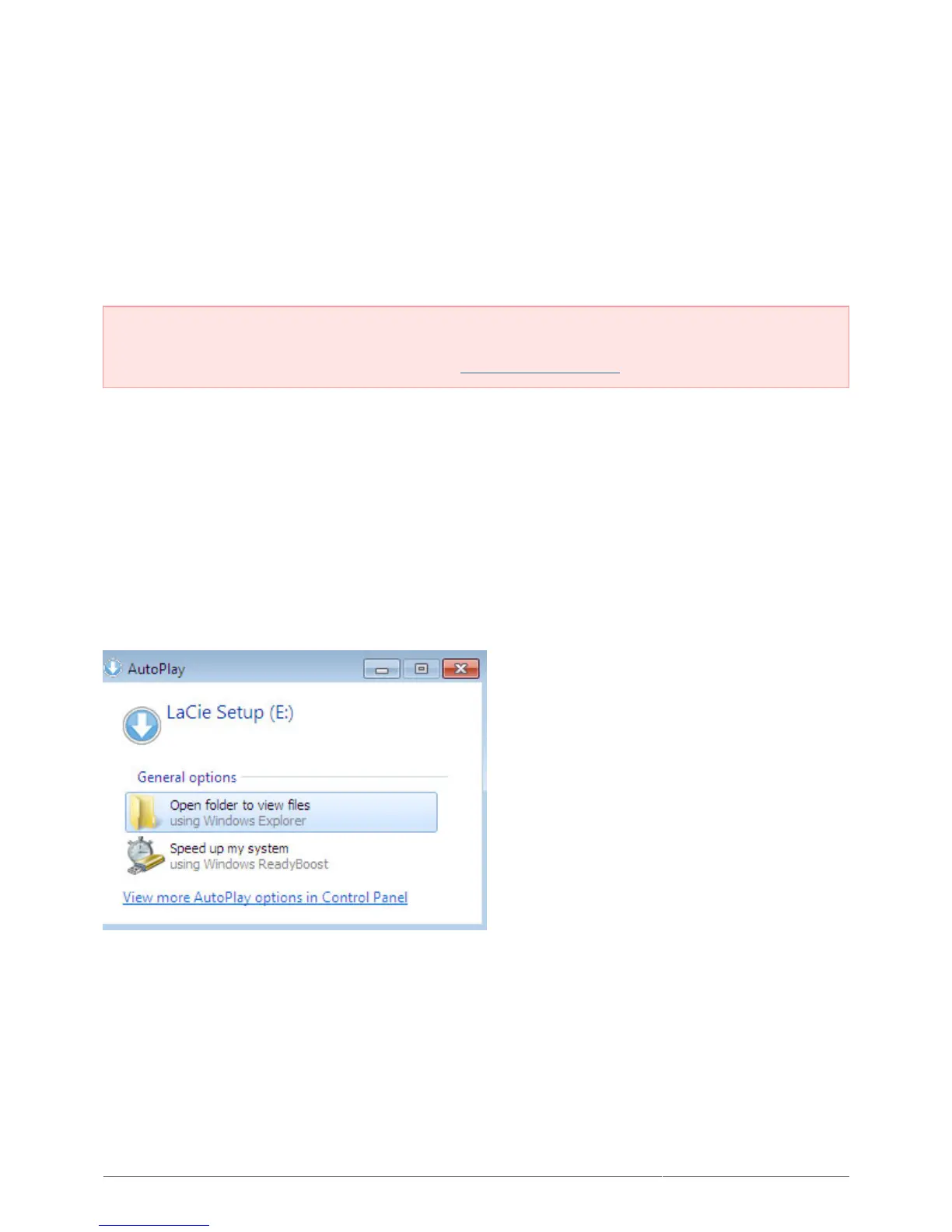 AutoPlay: Windows AutoPlay may detect your LaCie hard drive as soon as it is connected to your computer. If