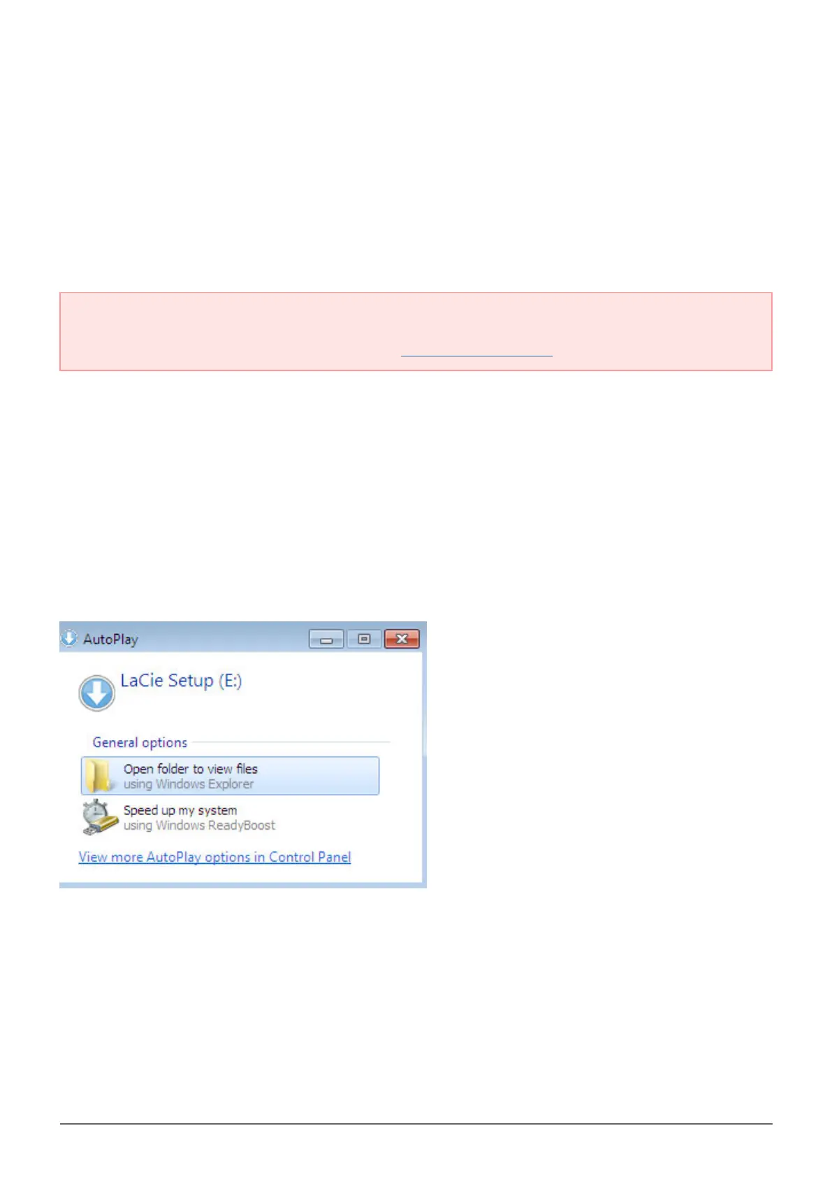 AutoPlay: Windows AutoPlay may detect your LaCie hard drive as soon as it is connected to your computer. If