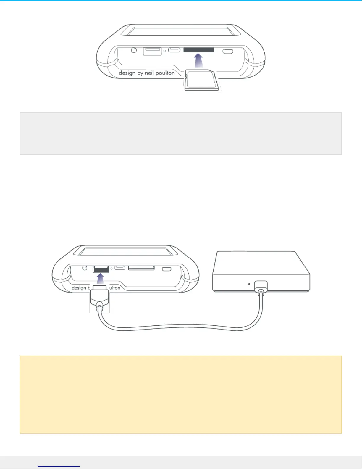 When connecting powered devices such as desktop storage, drones, or cameras, confirm that