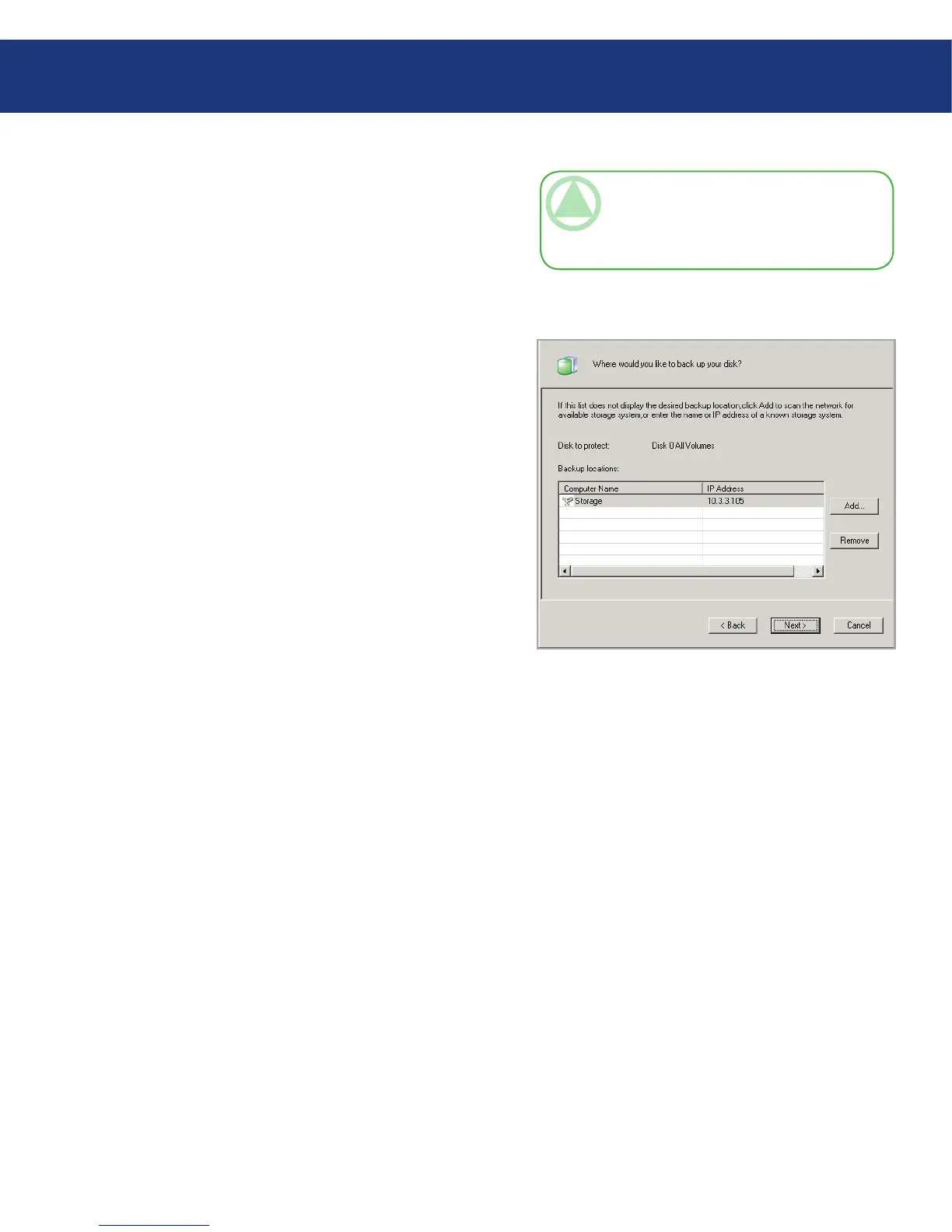 Once you have selected the desired backup location,