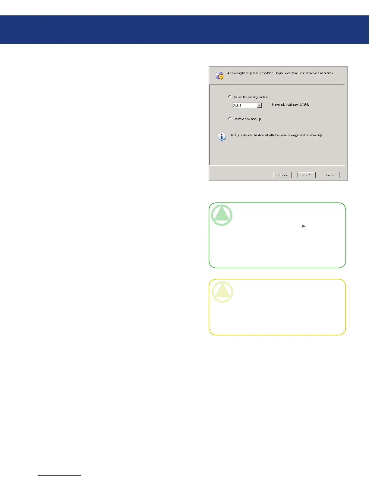 If you select Re-use the existing backup, you must
