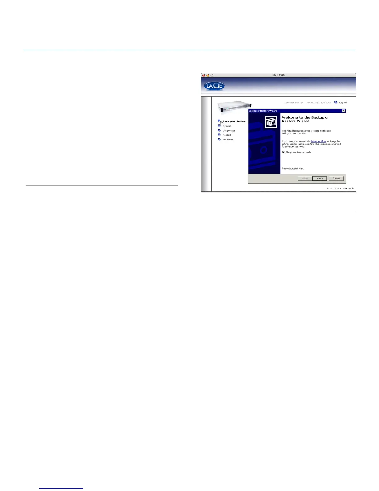 dard Windows Backup and Restore Wizard (Fig. 71). LaCie rec-