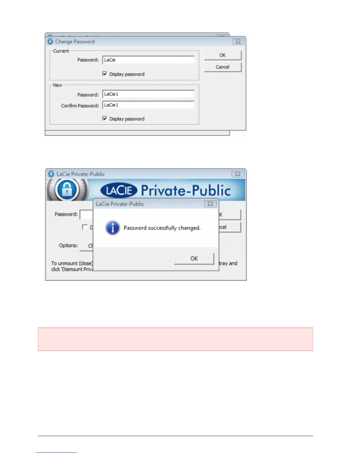 Important Info: Removing the LA-PRIVATE volume will delete all of its data. LaCie highly recommends that