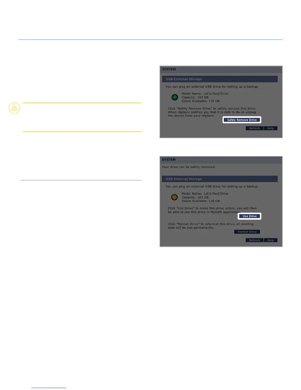CAUTION: Failure to safely remove your external hard drive
