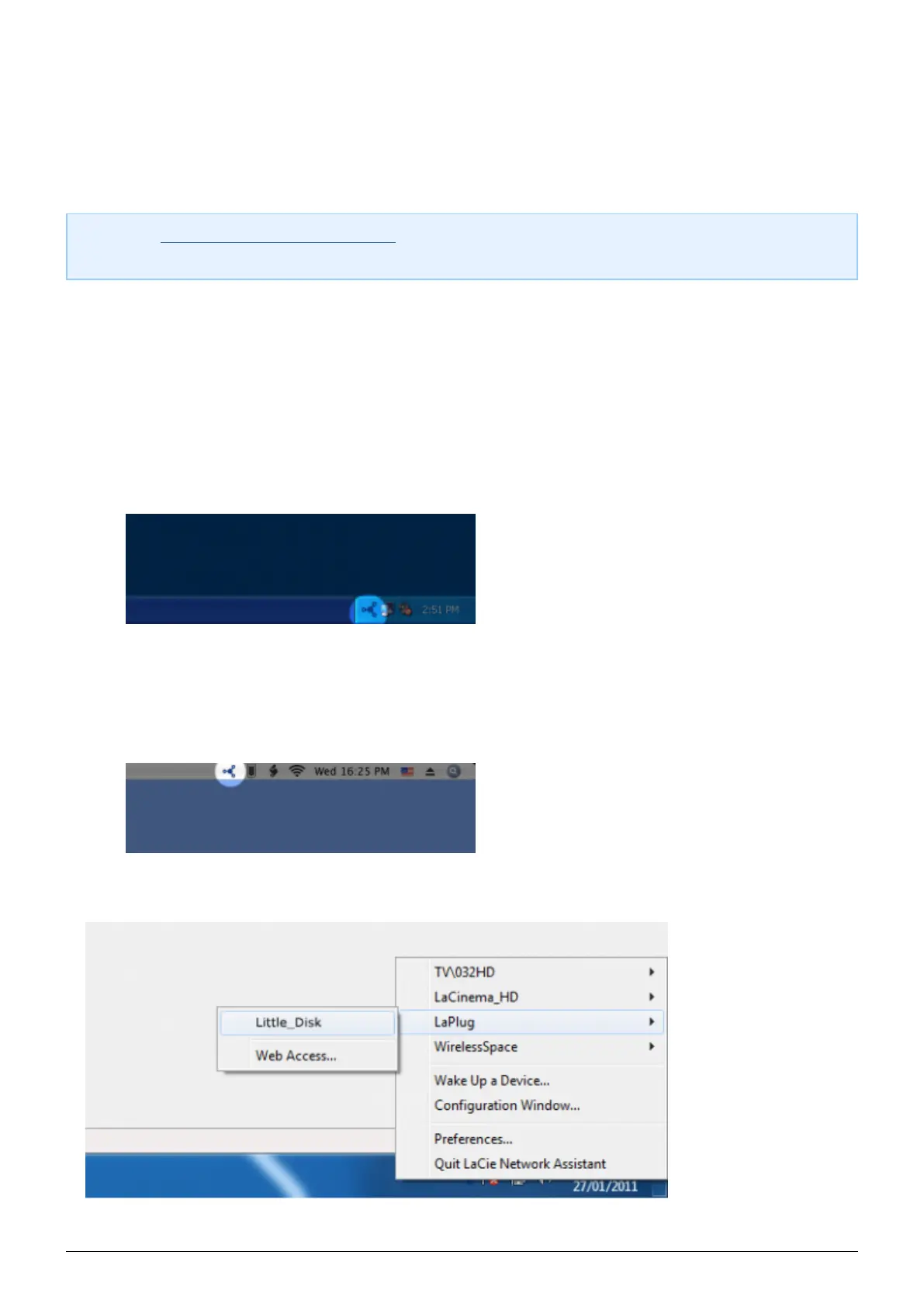 system tray and LaCie Network Assistant will automatically detect your LaCie product on the network.