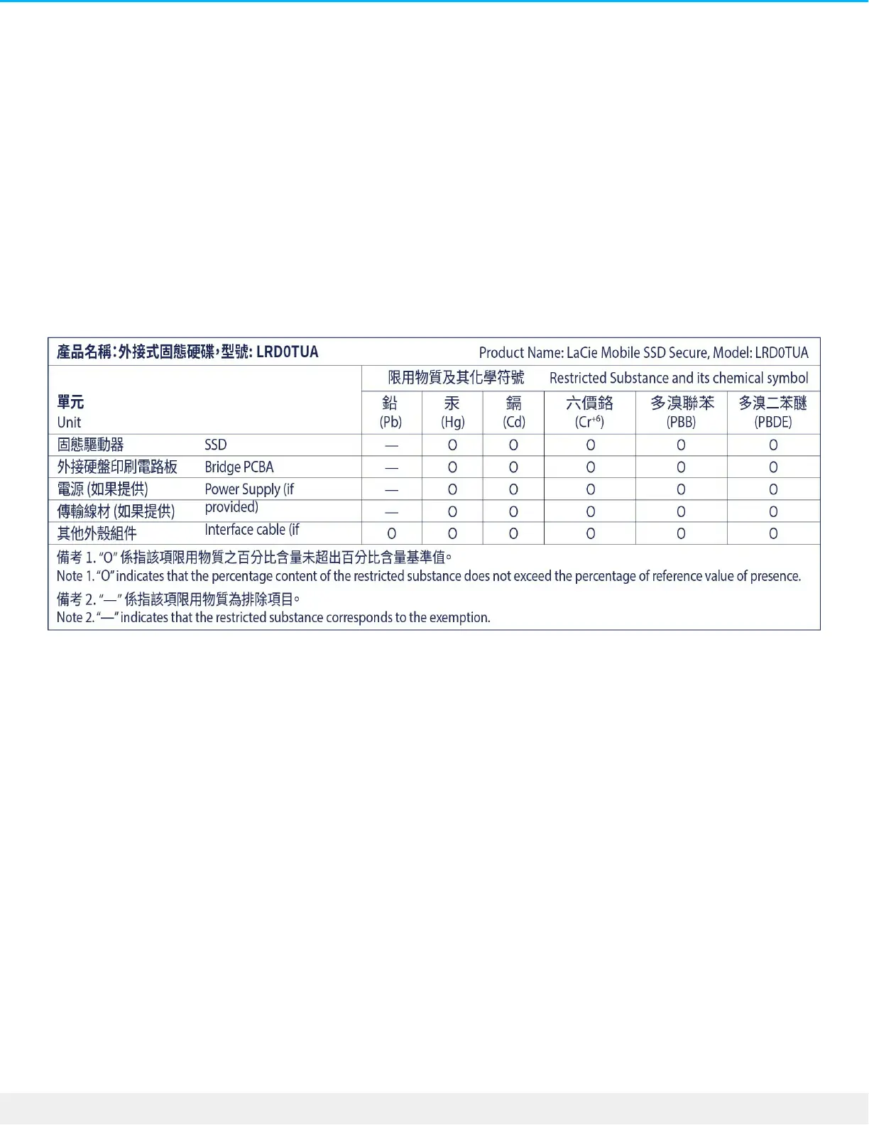 年1月1日起,Seagate產品必須符合CNS15663第5節「含有標示」要求。本產品符合台灣RoHS。 下表符合第5節