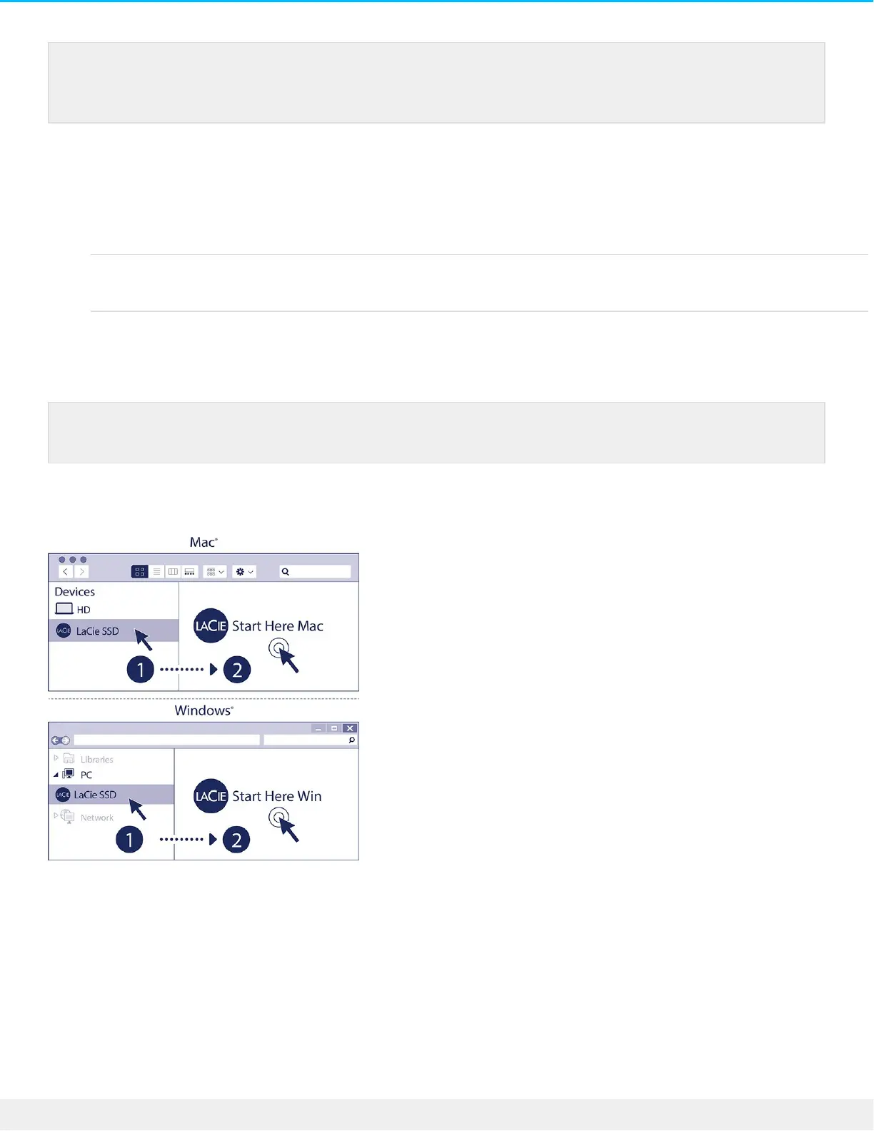 Using a file manager such as Finder or File Explorer, open Mobile SSD Secure and launch Start Here Win or