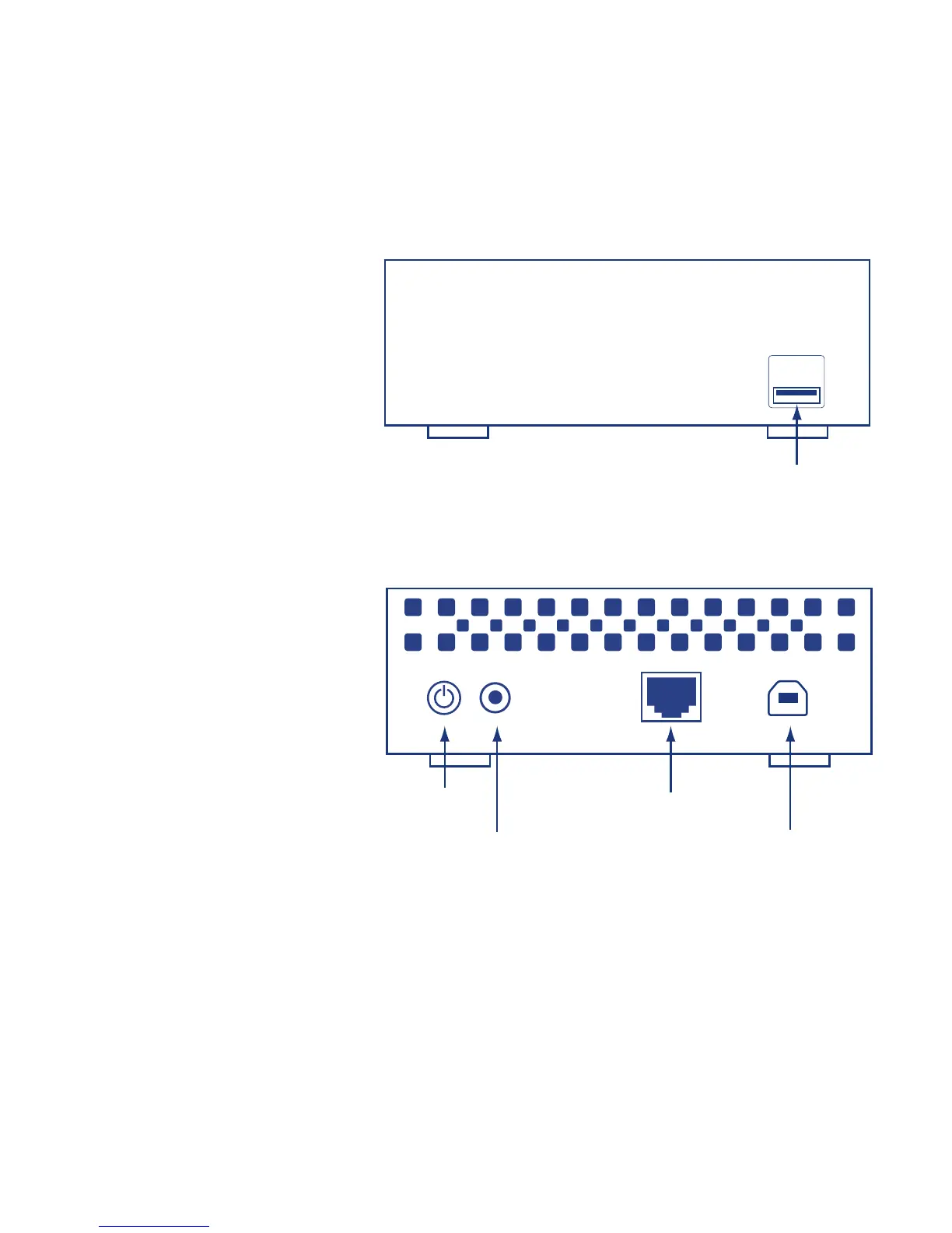 LaCie Network Space 2 - Box Content; Front View; Rear View; Ethernet Cable