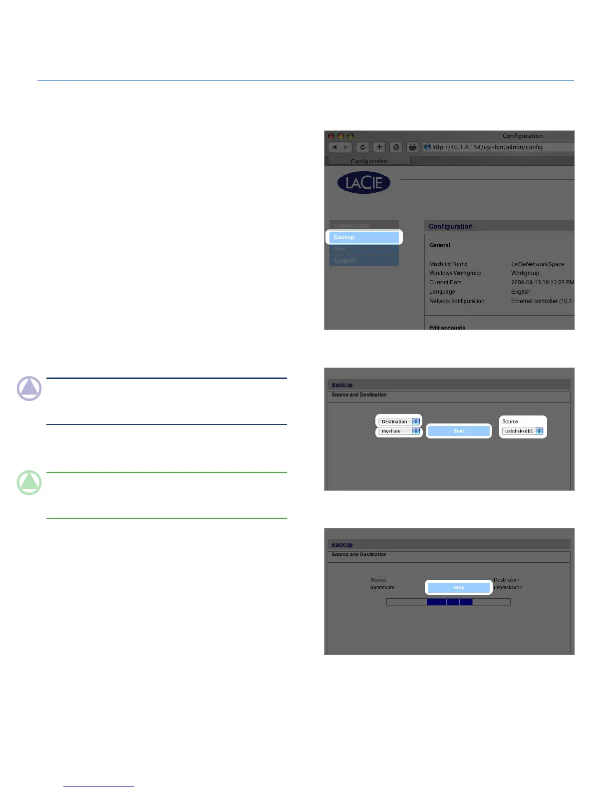 nal disk, or from the external disk to the LaCie Network Space.