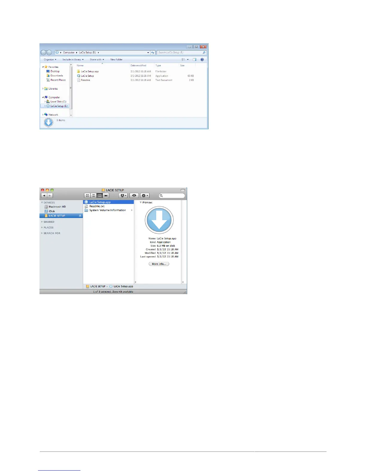 Manual access: Open the LACIE SETUP volume in Computer and double-click LaCie Setup.