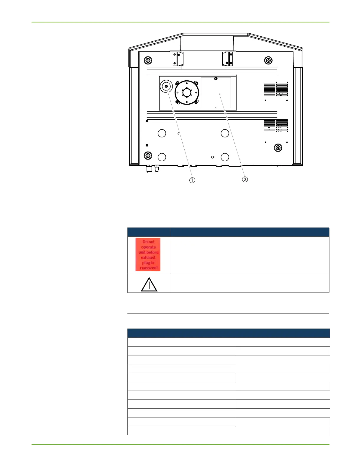 Sticker with note: Do not operate unit before exhaust plug is removed!
