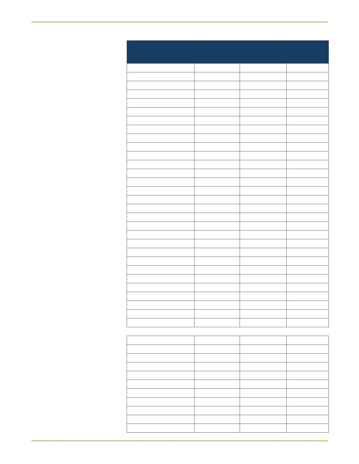 Table 3: Factory settings