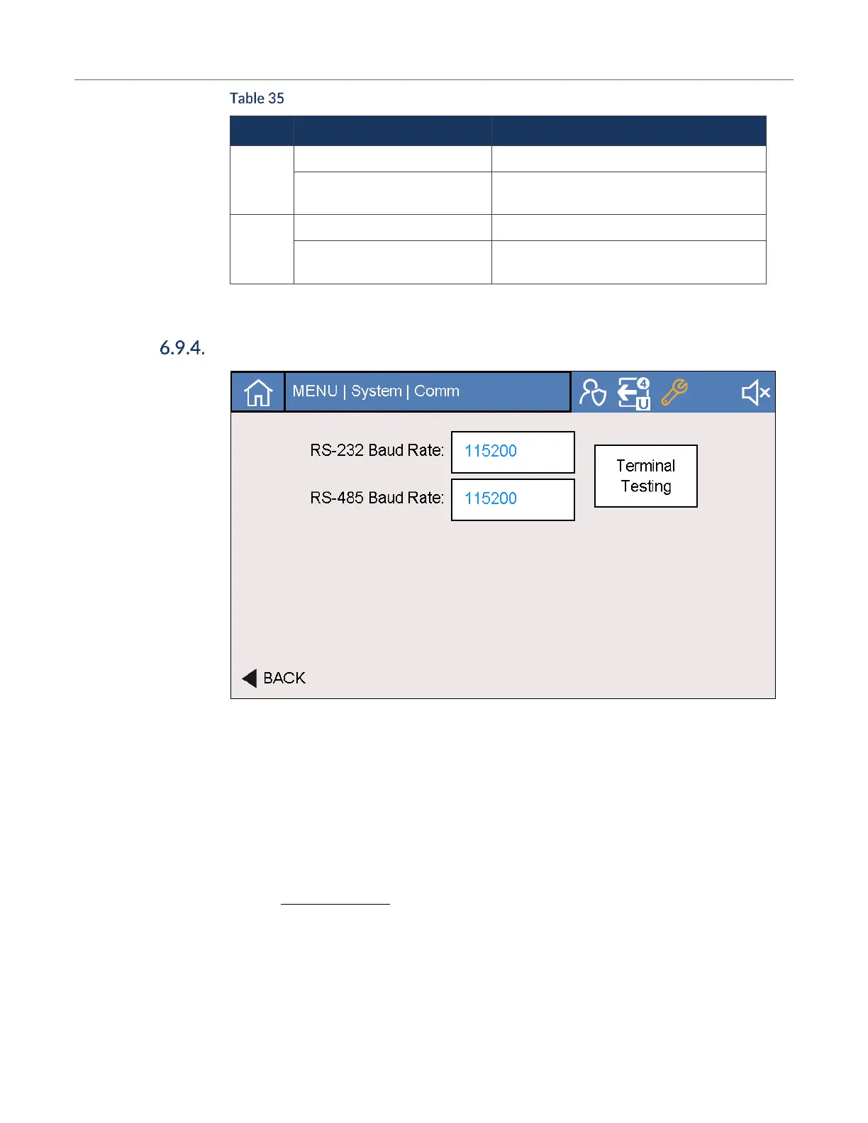 Serial Baud Rate Enter the desired baud rate for both the RS232 and RS485 communication methods.