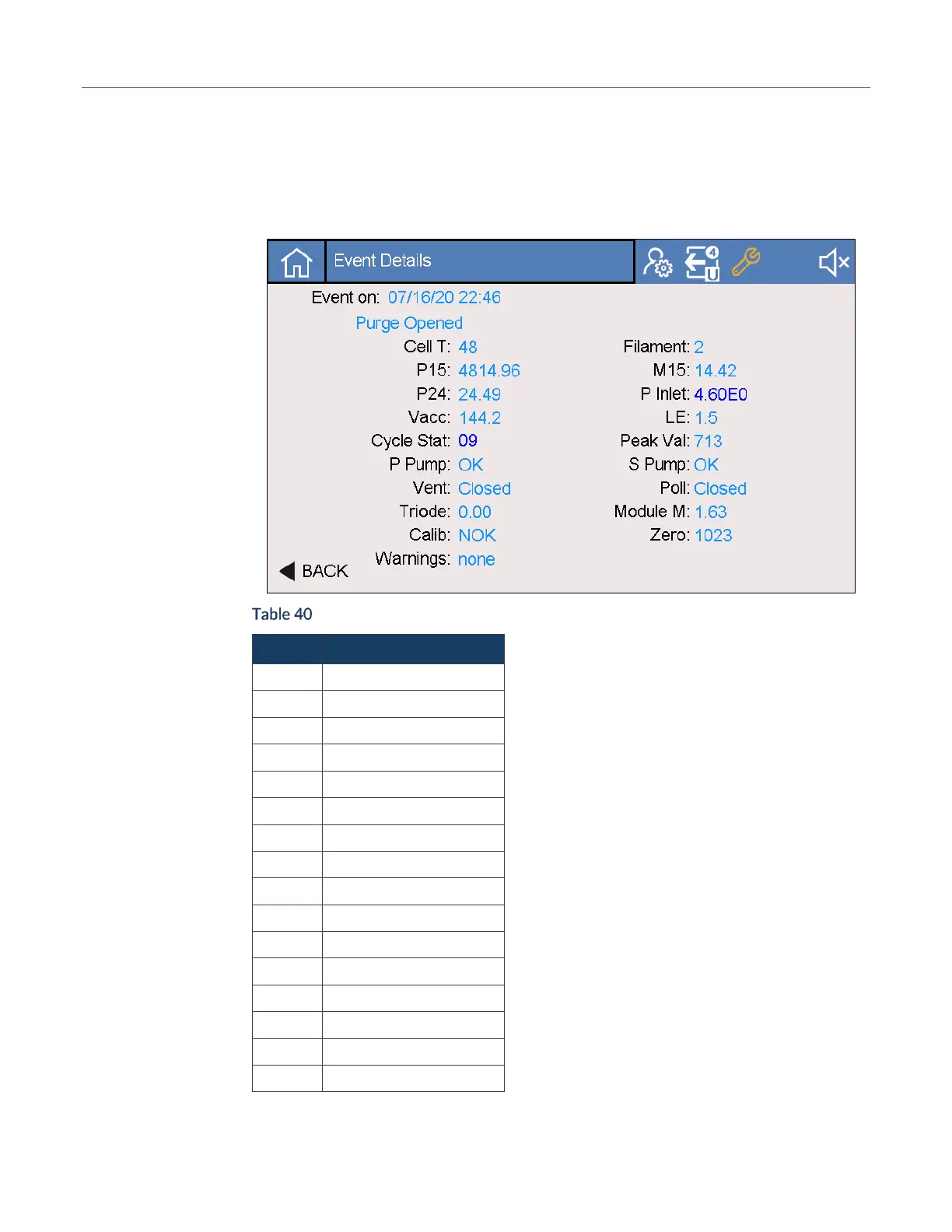 faults, warnings, and events are logged to event history. Reviewing these events can