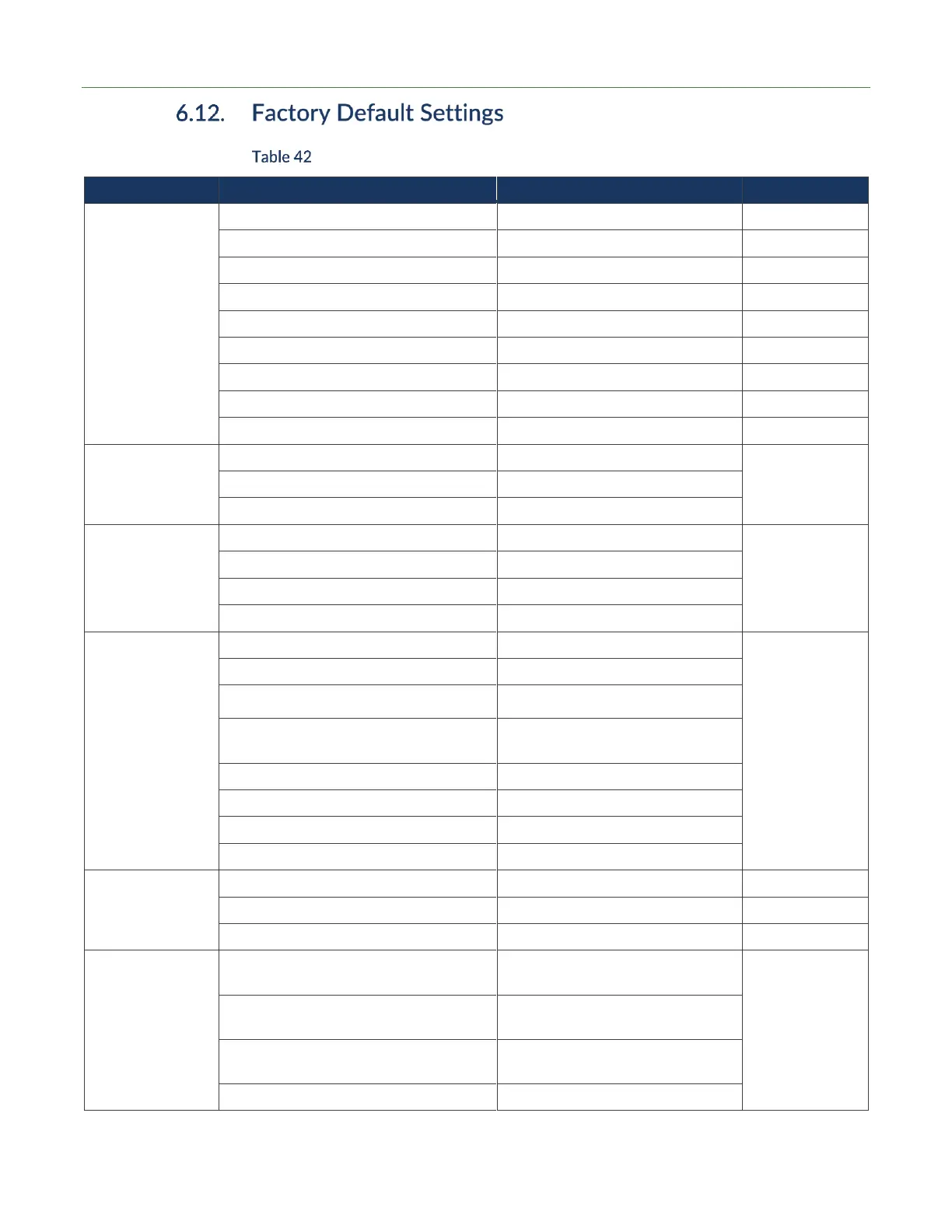 General Factory Settings