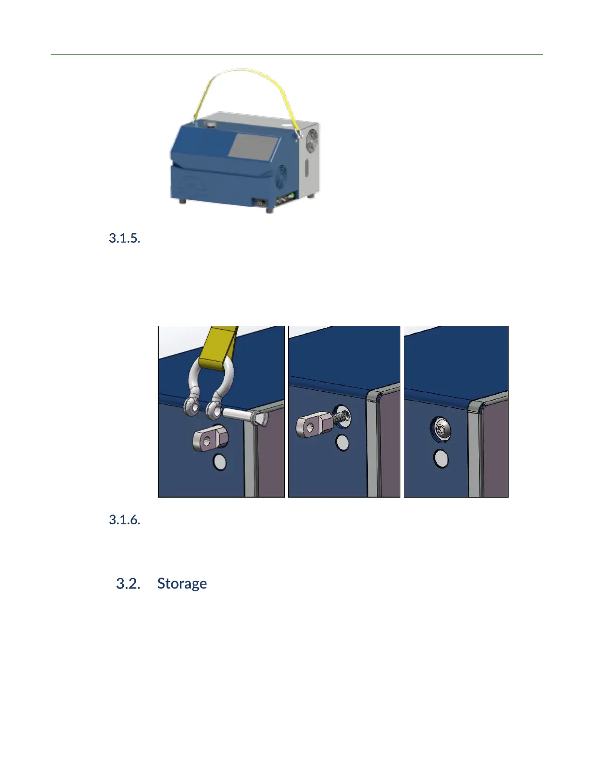 1. Detach yellow lift strap and D-rings from lifting bolts.