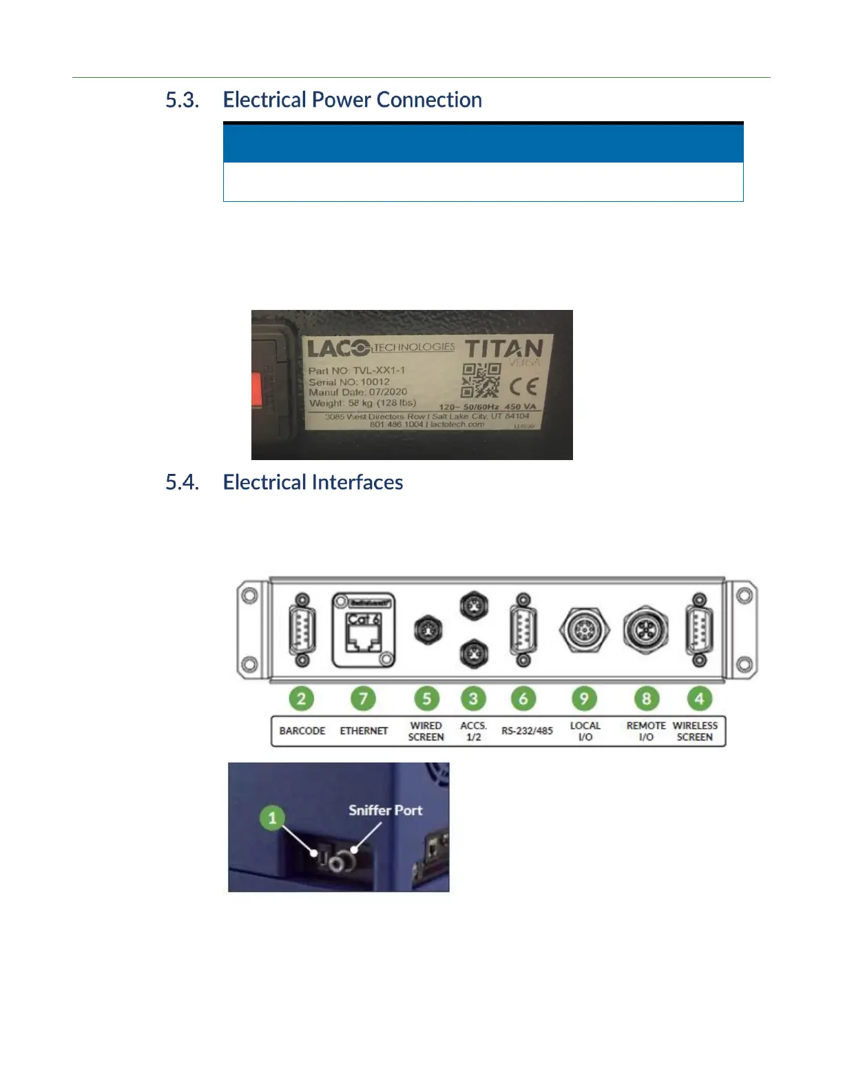 Electrical interface connections are located on the right side of all TITAN VERSA