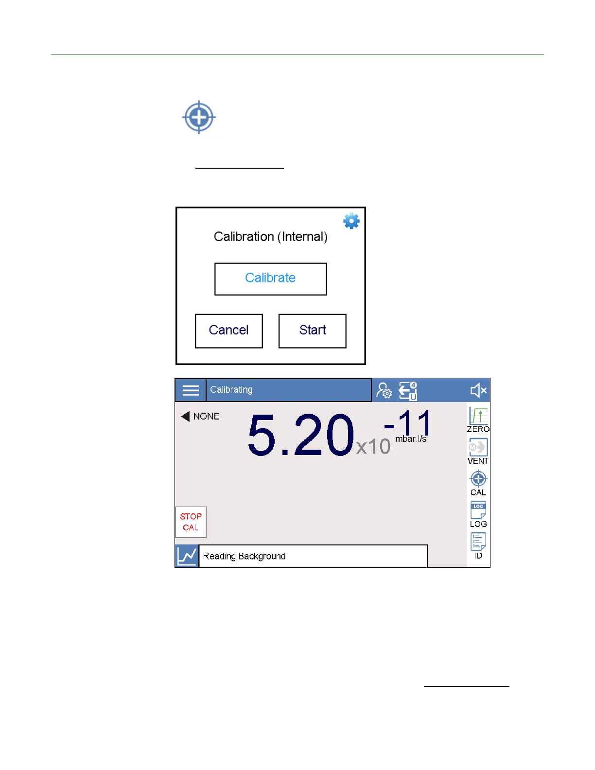 press the Stop Cal button if they wish to abort the calibration. The calibration