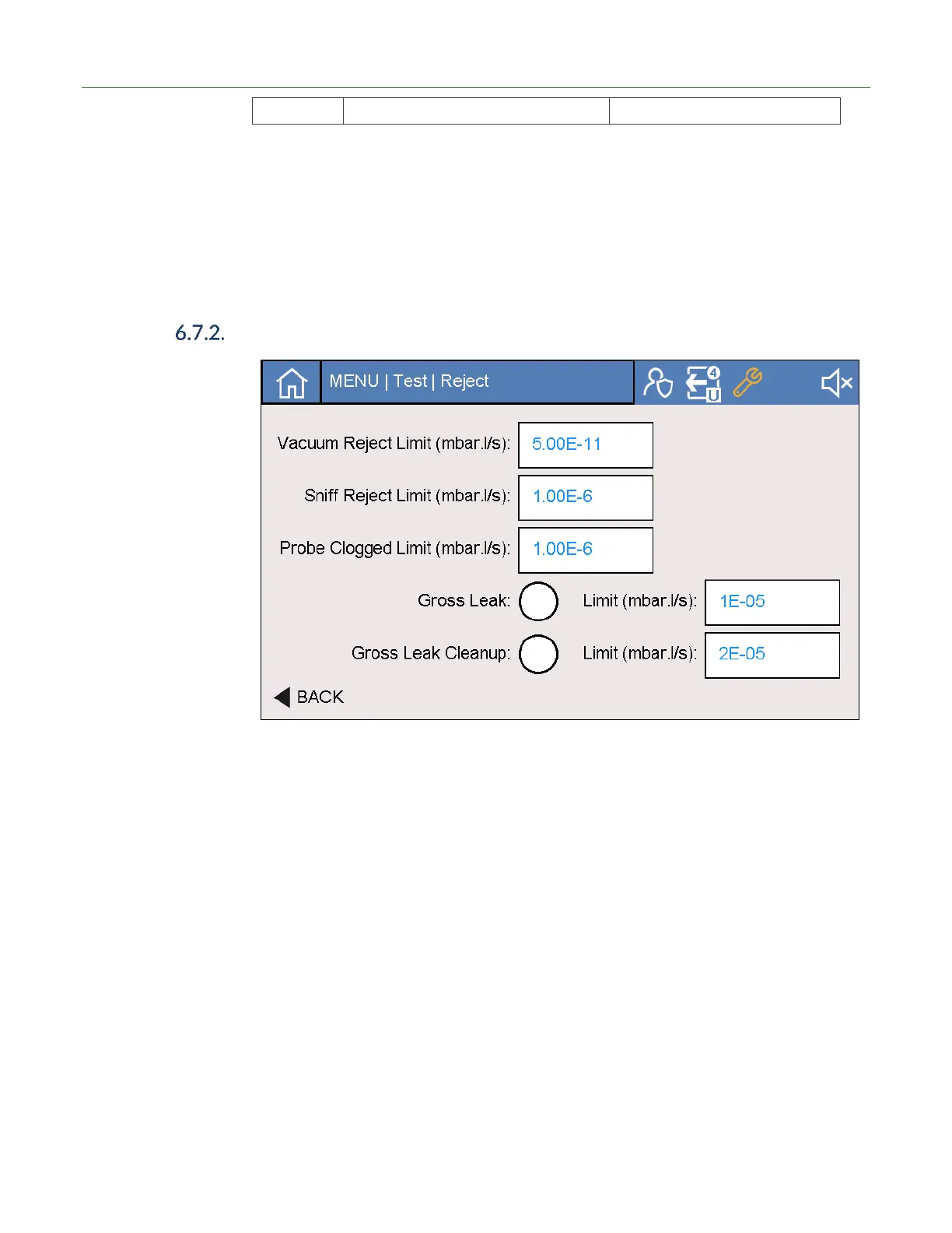 Reject Limits Reject limits can be entered for either vacuum or sniff test methods. Rejects limit are