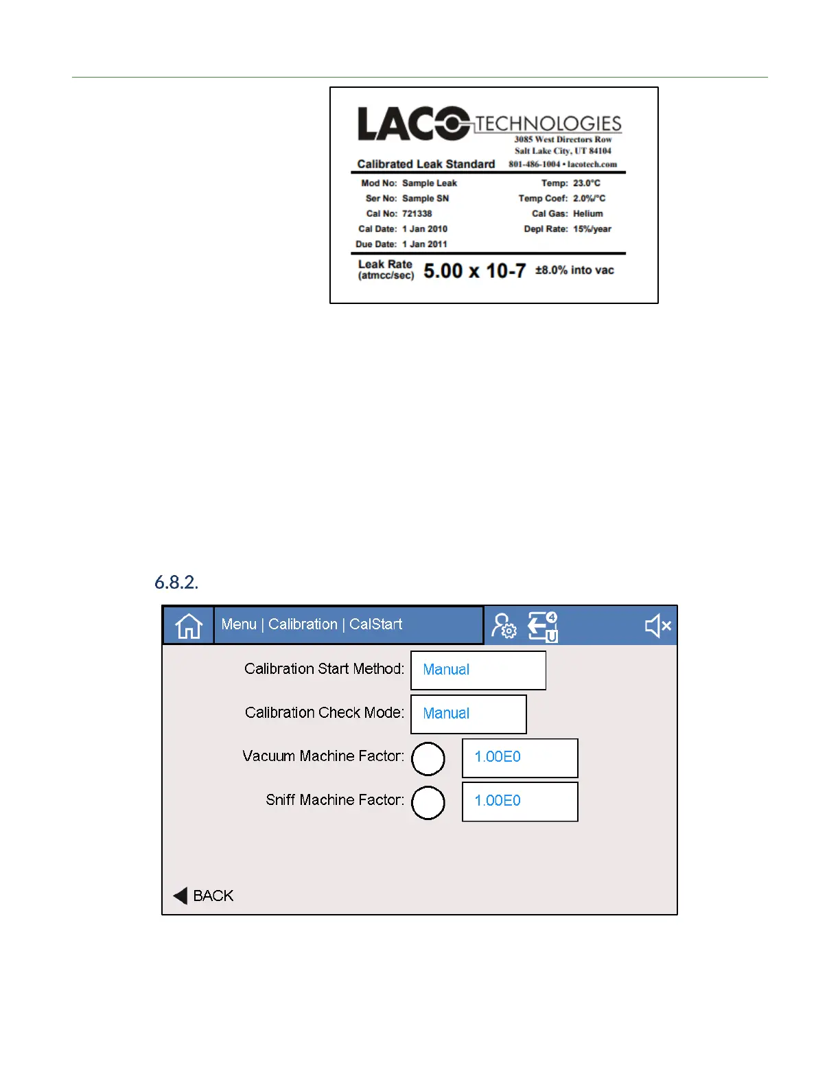 Cal Temp Enter the leak standard calibration temperature in Celsius.