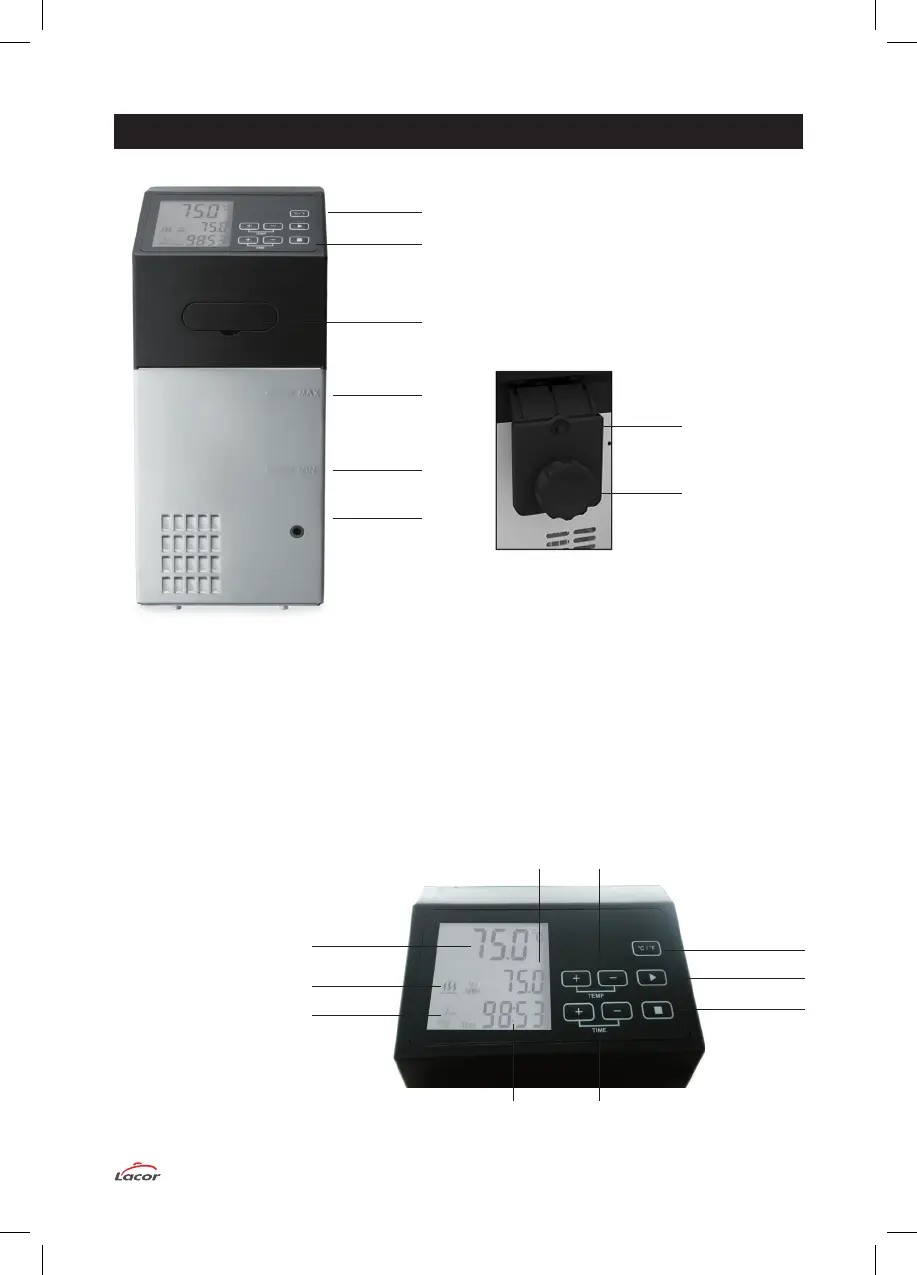 1.- Knopf °C / °F: Um die Temperatureinheit umzustellen
