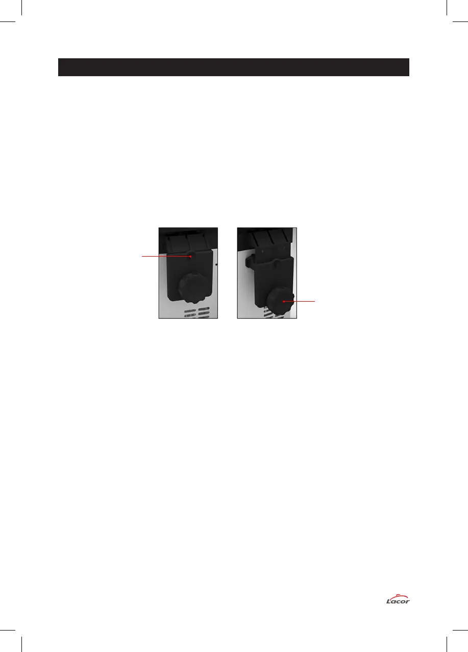Sie ihn an die Breite des Behälters an. Drehen Sie den Knopf (2) im Uhrzeigersinn, um den