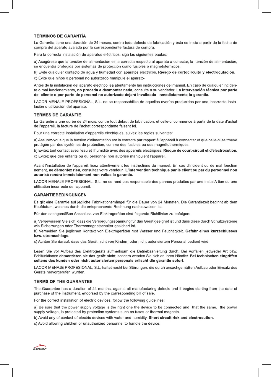 Lacor 69260 - TERMS OF THE GUARANTEE