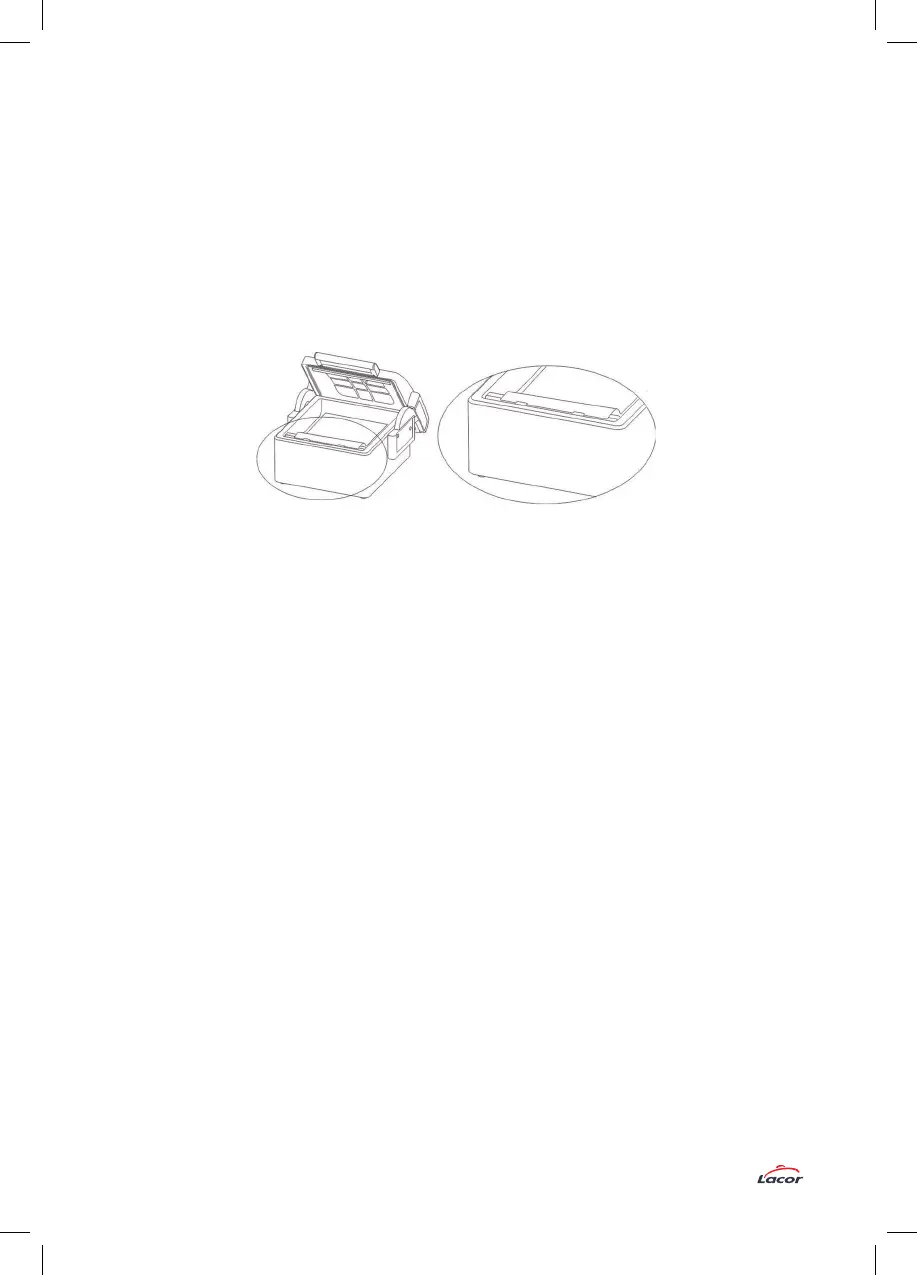 3.- Abra la tapa (4) y coloque la bolsa encima de la barra de sellado y entre el soporte para