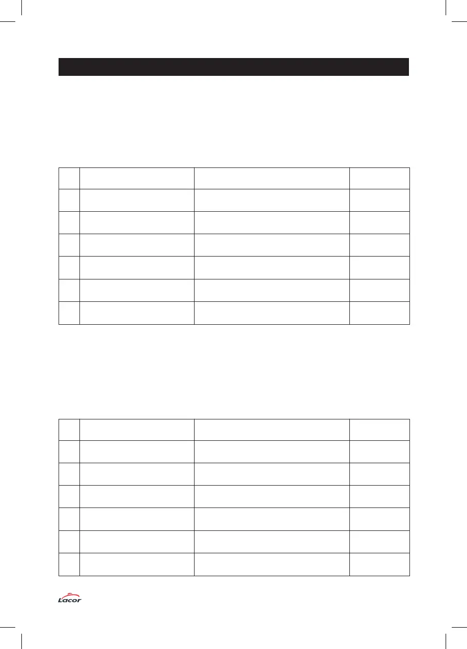 Siehe folgende Tabelle als Anleitung für die Zeitprogrammierung: