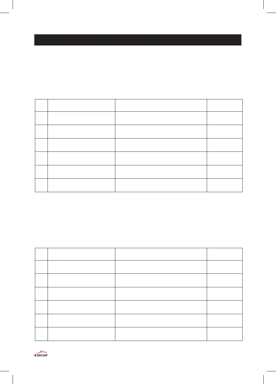 Druk op de knoppen “+” (E) en “-“ (D) om de Tijd Vacuümzuigen met stappen van 5 seconden te
