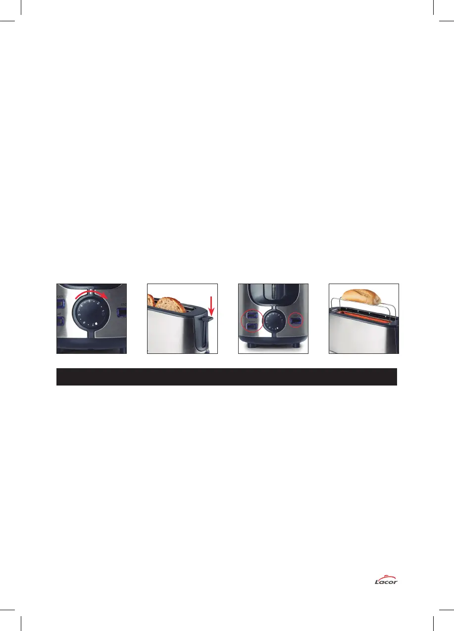 4.- Plaats het brood en de sleuf (4) en schuif de activeringshendel (6) omlaag. Het opwarmen start