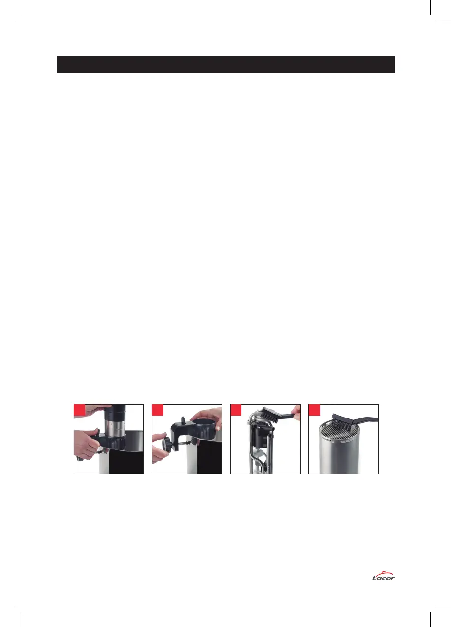 cuerpo de acero inoxidable y el soporte para olla. Vuelva a realizar la limpieza del