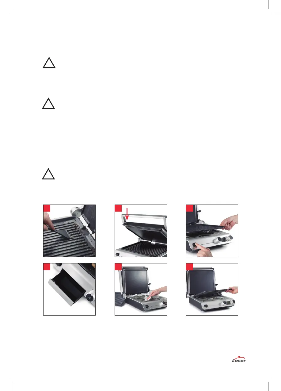 8.- Limpie tanto la bandeja recoge grasas como las 2 placas mediante agua y jabón. Ayúdese con
