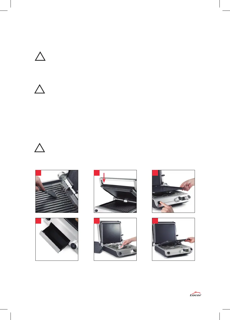 8.- Reinigen Sie sowohl die Fettwanne als auch die beiden Platten mit Wasser und Seife.