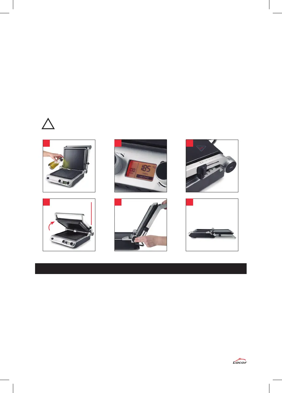 4.- Zet de grill helemaal open totdat beide platen helemaal horizontaal staan. Druk op de