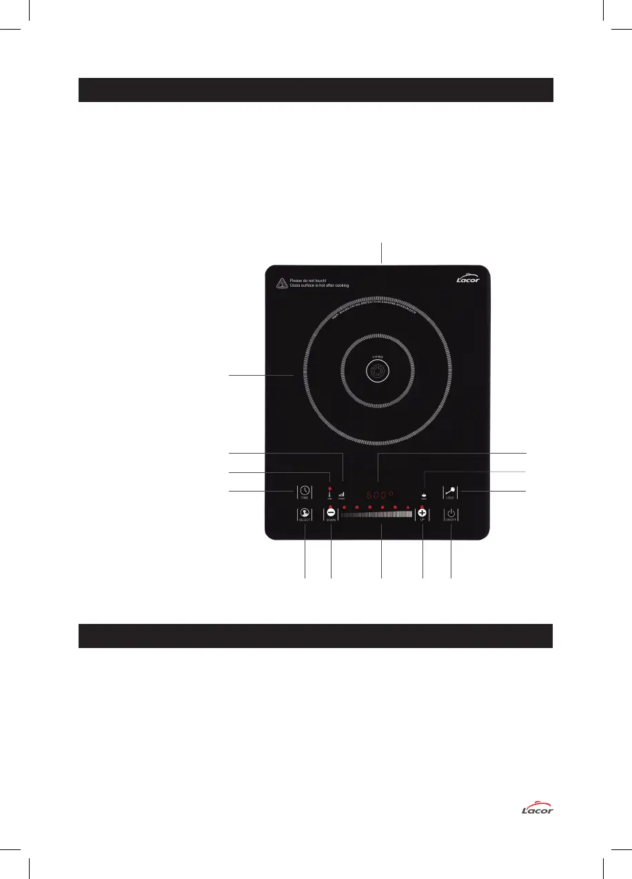 3.- Druk op de knop ON/OFF (9) om de plaat in te schakelen, er zal een led gaan branden boven