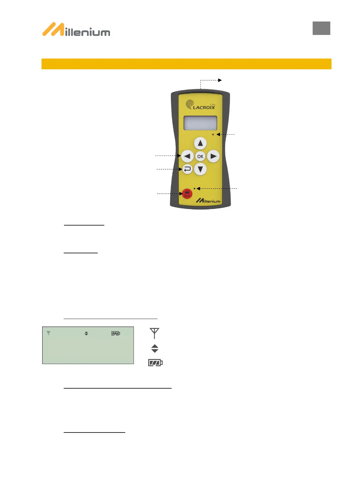 The remote control is fitted with an audible alarm to inform the user about an alert or a fault with the PTL system. After