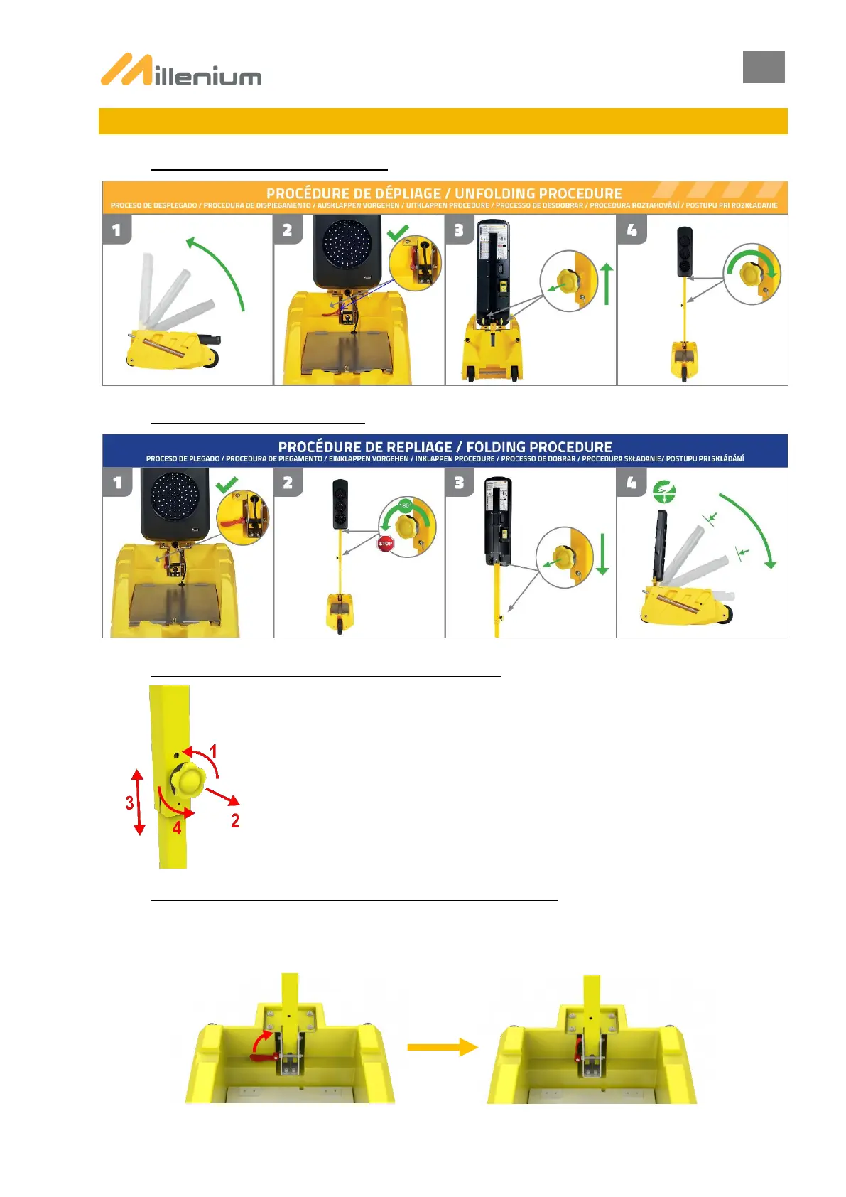 Note: before folding the light-head over the box, ensure that the tightening lever is in the unlocked position.