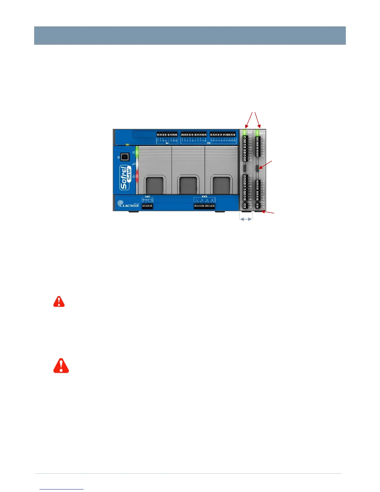 2°/ Press the button on the front side to disengage the expansion module from the main panel or from another module.