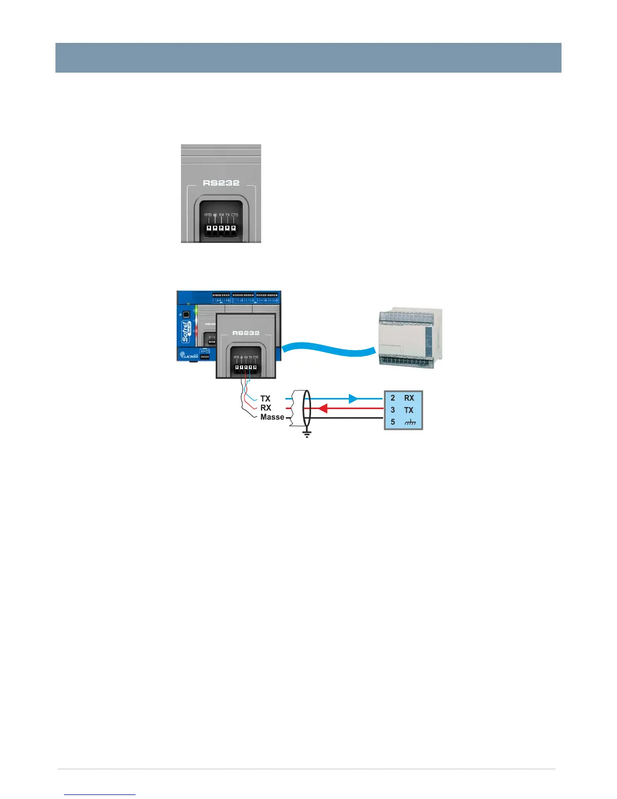 between 300 and 115,200 bits/s. The RS232 module is protected against short circuits, polarity inversion and accidental connection to